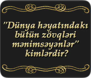 Halbuki Allah dünya həyatını insanlar üçün, imtahan mühiti kimi yaratmışdır. Bundan ötrü də, dünya həyatının bəzəklərinə qapılmaq böyük yanılmadır. Peyğəmbərimiz (s.ə.v) bir hədisində dünya həyatı ilə əlaqədar belə buyurur: